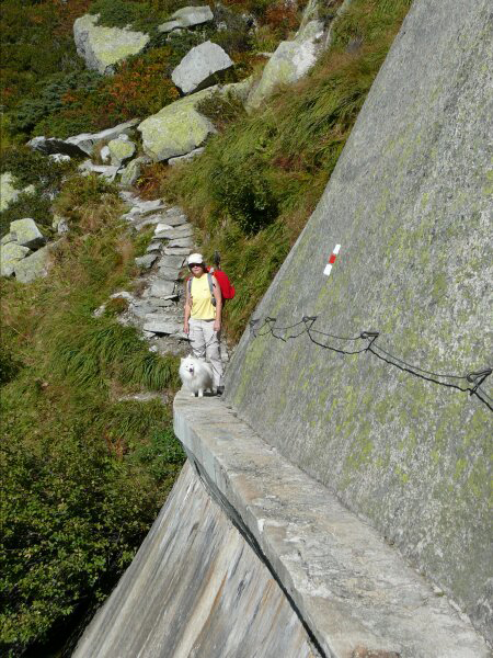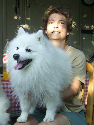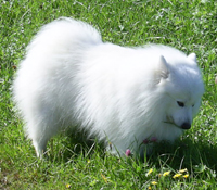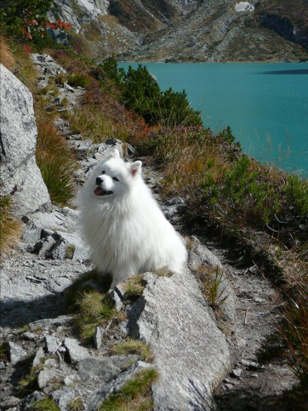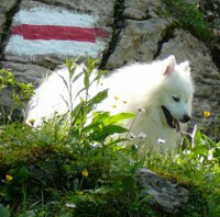 Der Internationale Champion beim Spaziergang mit den Allgäuer Japan Spitz-Mädchen am 26.08.07: