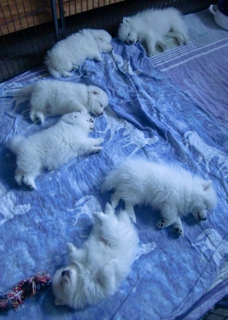 Das Mädchen wiegt 210g, die Rüden 196, 208 und 226g