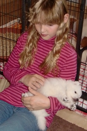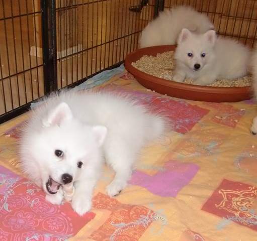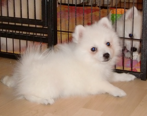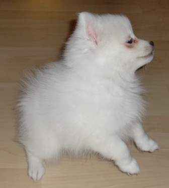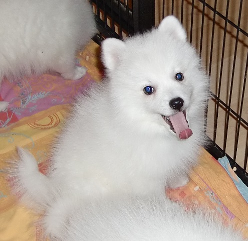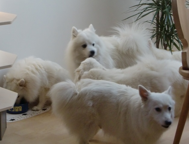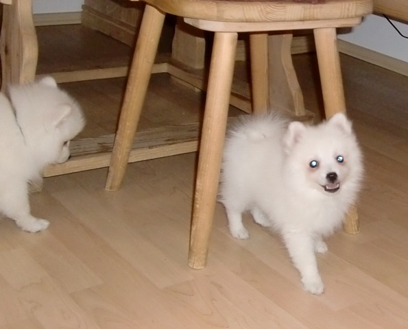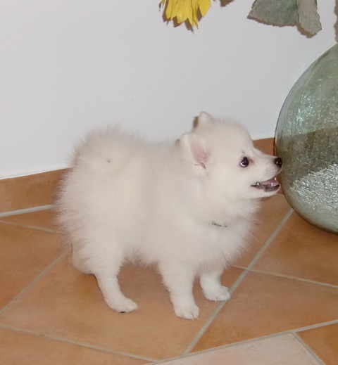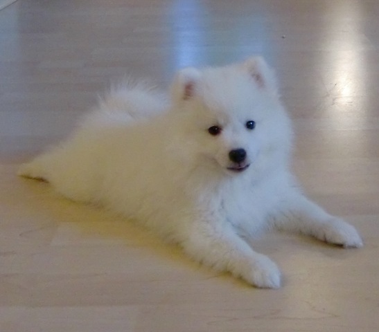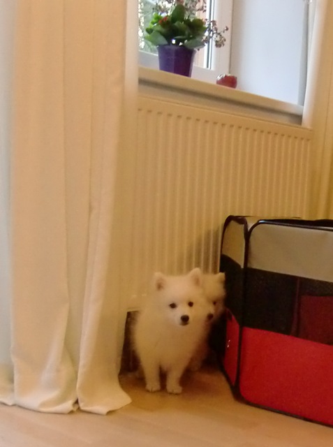 2-jährige Japan Spitz-Rüde Gandalf das Zimmer. Er ist ein Sohn von We-Sedso Maya und Pauli, also Paulinas Neffe :) |