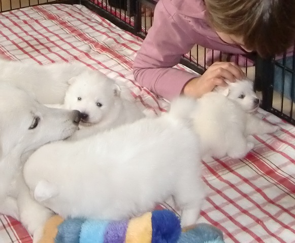 Die Welpen sind 5 Wochen alt, und bekommen jetzt vielen lieben Besuch...