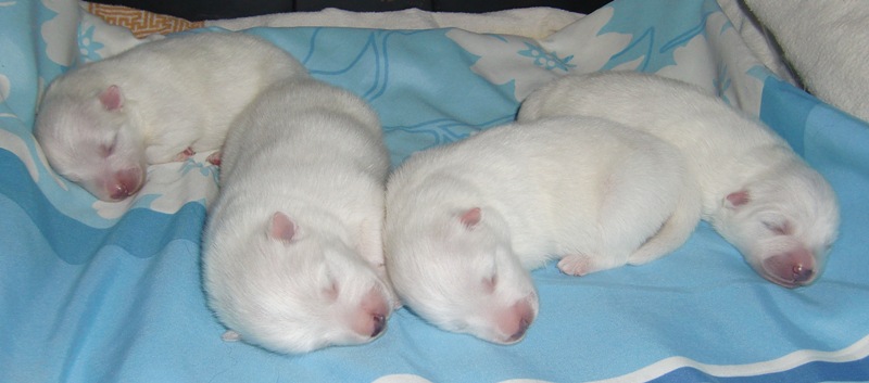Die vier Welpen sind nun 9 Tage jung und haben ihre zukünftigen