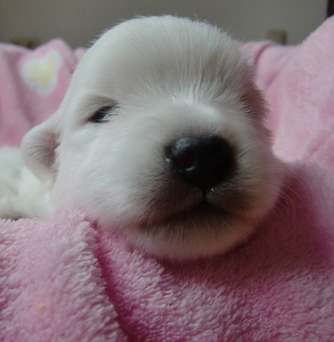 immer im Blickkontakt mit Frauchen, und das schon mit 4 Lebenswochen :)