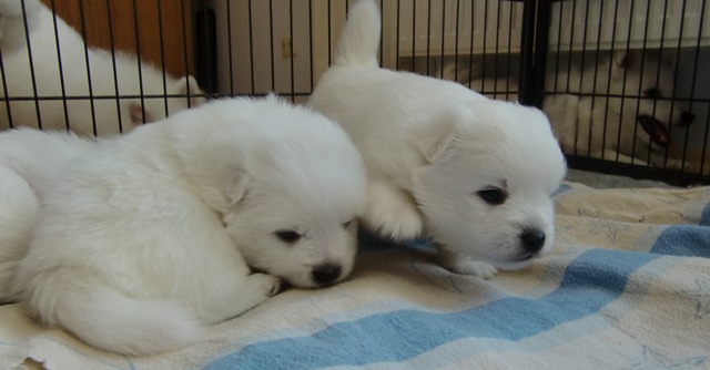 Lebenswochen bekommen die drei Japan Spitz-Buben