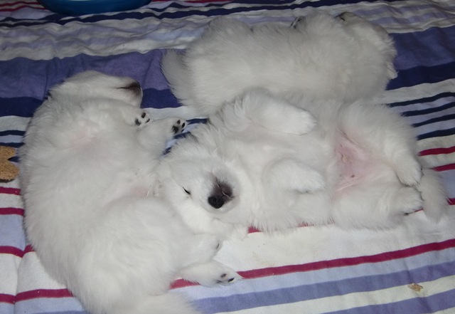Am 21. April - mit genau 8 Lebenswochen - wiegen unsere drei kräftigen Japan Spitz-Buben: