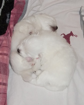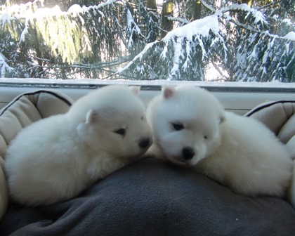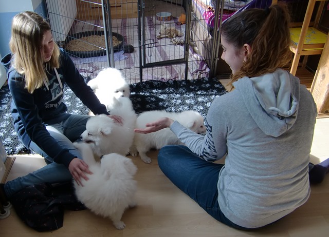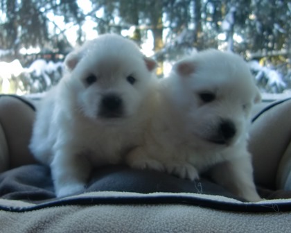 Die kleinen Japan Spitz-Kinder wachsen und gedeihen prächtig