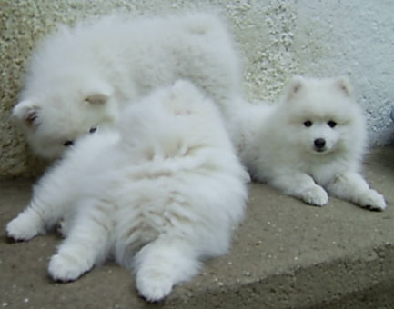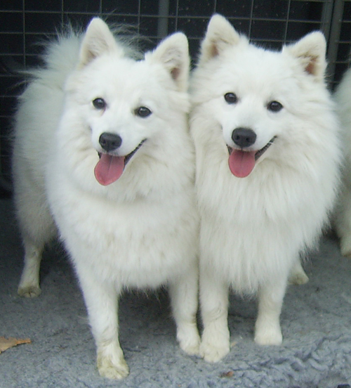 der urtypischen Rasse Japan Spitz wachsen zusammen auf.