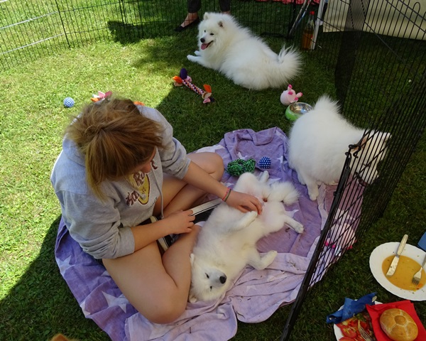 Freien auf der Wiese, bitte bringt Decken, (evtl. Hundebox zum Ausruhen)