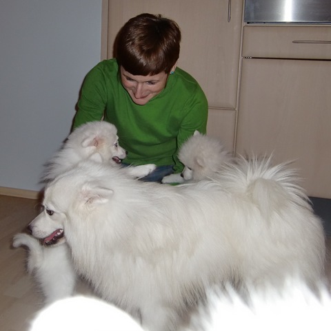 Shiro hat nur Augen für die Japan Spitz-Damen... :) |