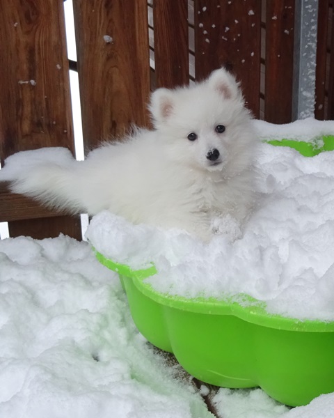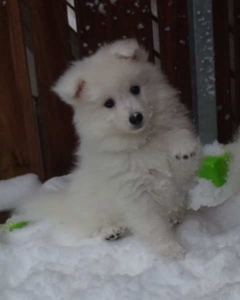 Bibi stammt aus unserer "Allgäuer Bergspitz"-Linie (Dana - Alpha - Isabella - Bibi), aus unserem Sechserwurf von Isabella und Akio, unserem 1. eigenen Japan Spitz-Rüden. Bibis Großeltern: Akio (wird aktuell 12 Jahre) ist ein Sohn von Noblewhite Andrei, der finnisch-russisch-japanischer Abstammung war und nach England verkauft wurde, und Ami Myjuki vom Alten Fuhrmann (aus der Zucht des verstorbenen Heinz Flexer). Isabella (aktuell 9 1/2 Jahre) ist eine Vollschwester von unserem Champion Dear Balto. Mutter ist unsere geliebte Alpha von den Allgäuer Bergspitzen, Vater war Gaston von Snejanka (geb. 1999, gest. mit 16 Jahren), einem Sohn des bekannten Thomdy Dom´s Mister Magic (FIN). |