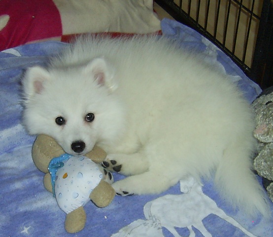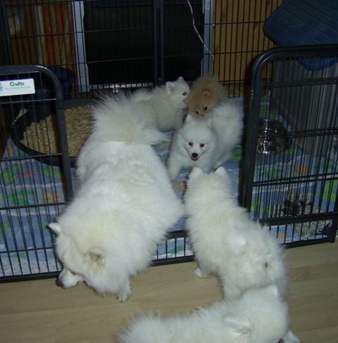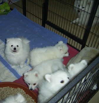 26. Januar: Die 5 Japan Spitz-Mädchen werden in 2 Tagen vier Wochen alt
