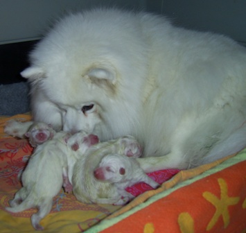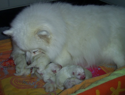 ![]() Unsere Alpha (6 Jahre) freut sich über ihren (letzten) Nachwuchs. |