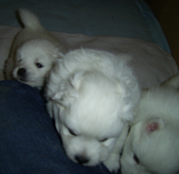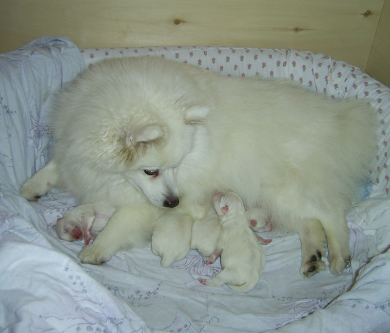 Nachdem letztes Jahr im August eine kleine Prinzessin - unsere Sissi - geboren wurde, sind es nun aus der gleichen Verpaarung... 4 Japan-Spitz-Welpen ! |