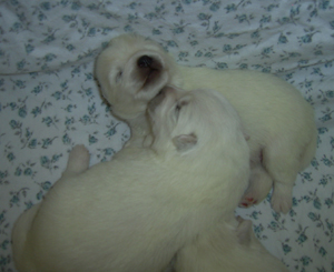 Izumi Yukiko (= jap."Ursprung Schneekind") und Isabella mit 7 Wochen |