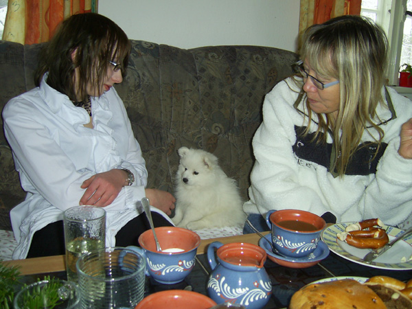... die einjährige Hanni ist jetzt "Tante", unser Balto ist der große (Halb-) Bruder und Isabella die (Halb-) Schwester.... Diese Geburt war also wirklich mehr als EIN freudiges Ereignis :-))
