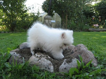 Die Welpen bekommen heute Besuch aus Schleswig-Holstein ... und natürlich wird auch mit den größeren Japan Spitz - Kindern ausgiebig geschmust und im Garten gespielt